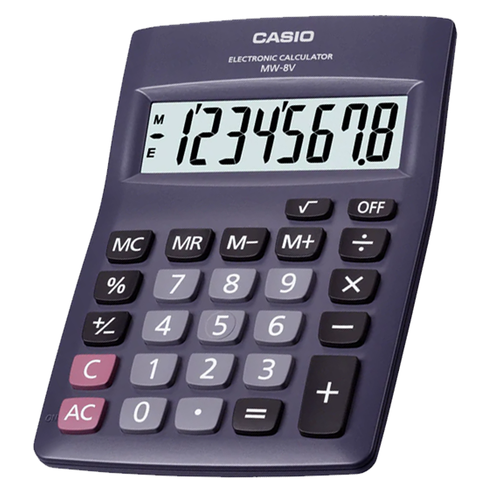 Số lượng - + Cho vào giỏ hàng Máy Tính Casio MW-8V - is currently on backorder. You may still purchase now though and we'll ship as soon as more become available. (giá bao gồm thuế VAT) - Kích thước (Dài × Rộng × Dày) : 145 × 103 × 28,8 mm - Màn hình lớn dễ dàng đọc dữ liệu - Phím cấu tạo bằng nhựa dể dàng thao tác - Chức năng nổi trội: tính tỷ lệ phần trăm - Có bán rộng rãi tại các nhà sách lớn
